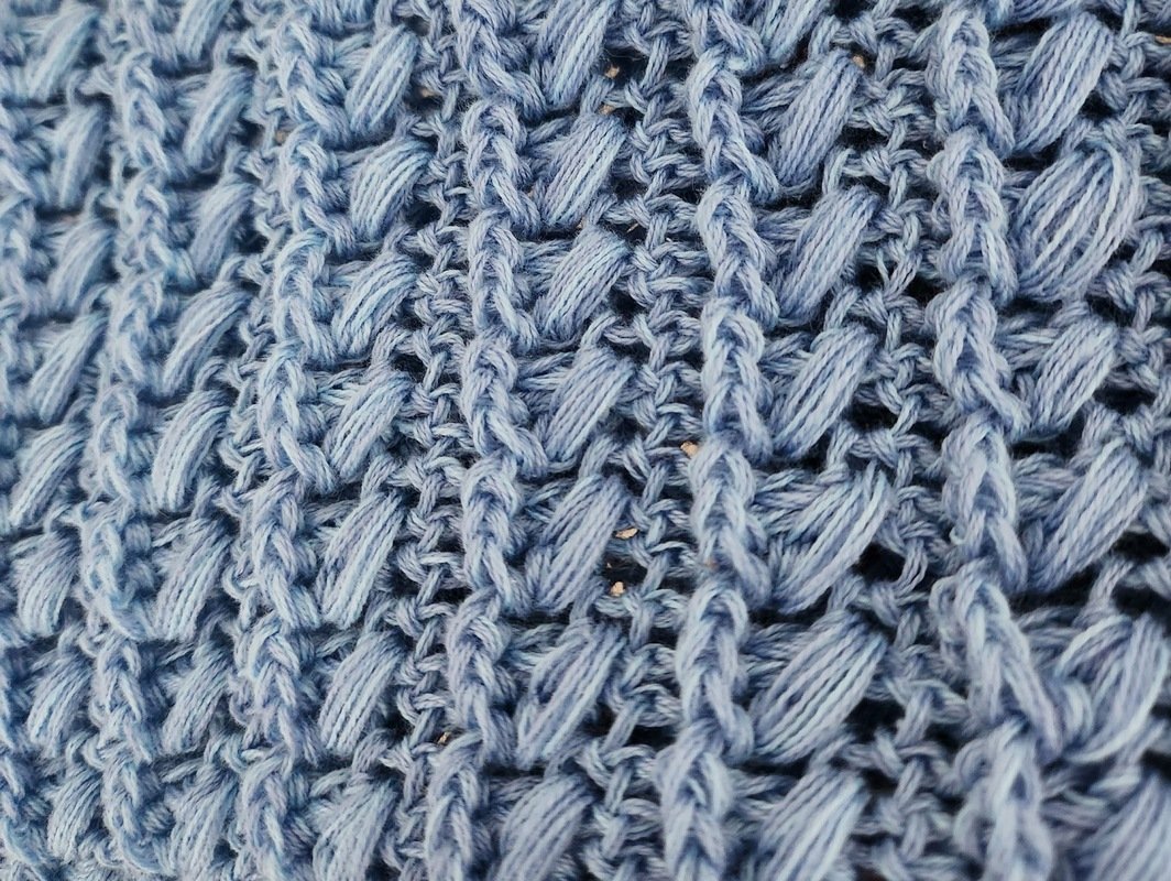 Das solltest Du können: Luftmaschen, Stäbchen, Fußschlingenstäbchen, Büschelmaschen, vorderes Reliefstäbchen und hinteres Reliefstäbchen.