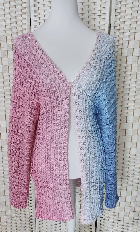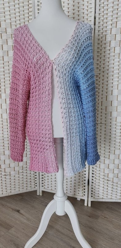 Je nach Garnauswahl, kann man die Jacke zu jeder Jahreszeit tragen. Besonders gut eignen sich hier Farbverlaufsgarne/ Bobbel.