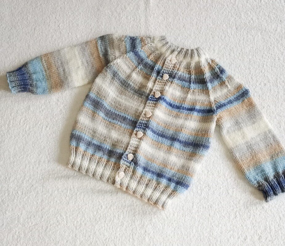 eine Strickanleitung für ein Jäckchen im Rundpassen/ RVO -Mix für Größe 68