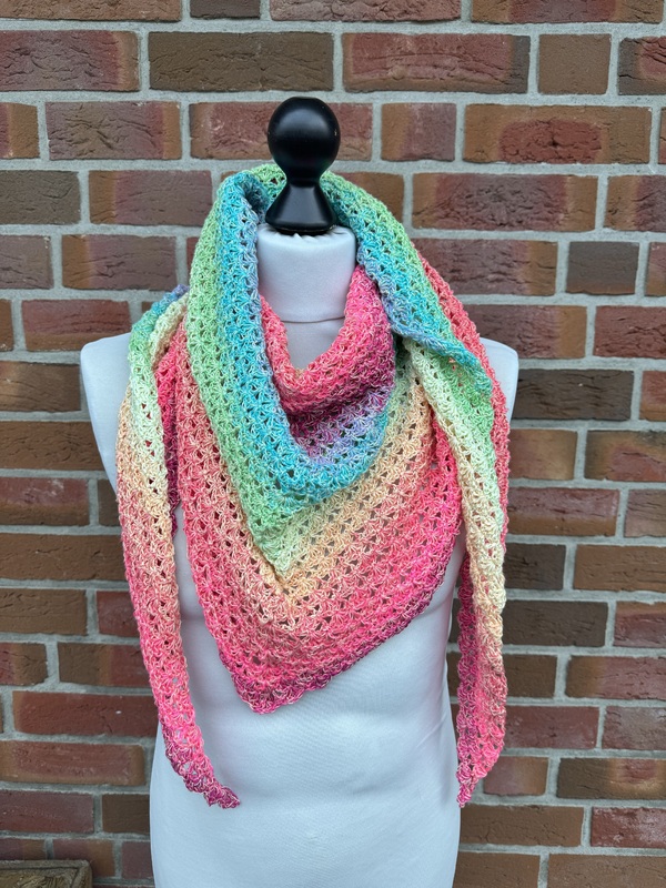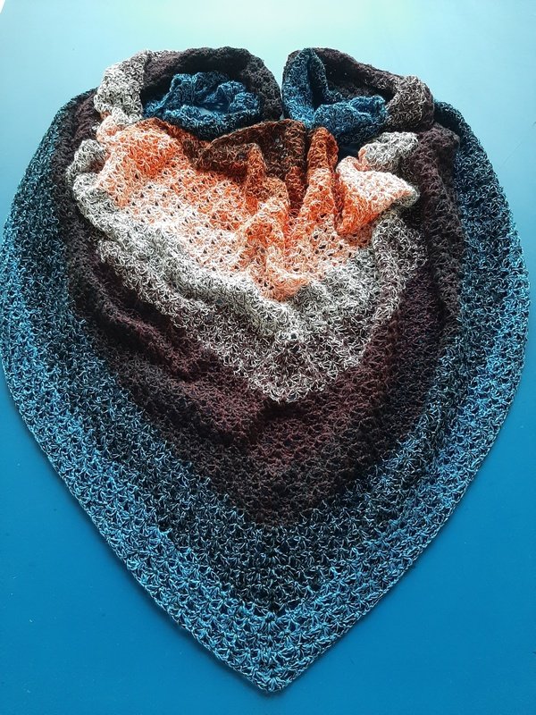 Mad Shells ist ein flott gehäkeltes Dreieckstuch mit flacher Form und einem einfachen, aber effektvollem Muster, chillig zu häkeln und passend für jede Jahreszeit.