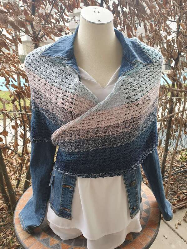Das Tuch kann aufgrund des Endlosmusters in beliebiger Größe gehäkelt werden.