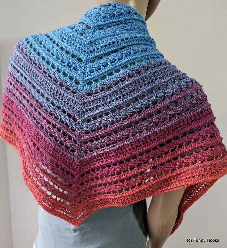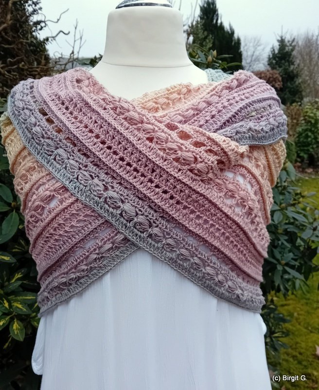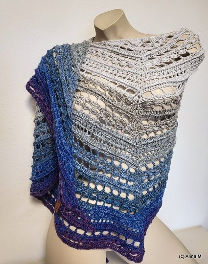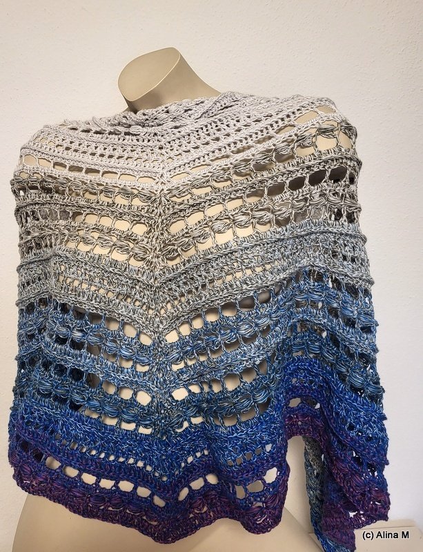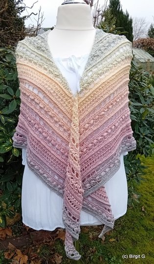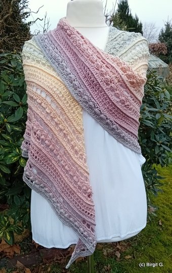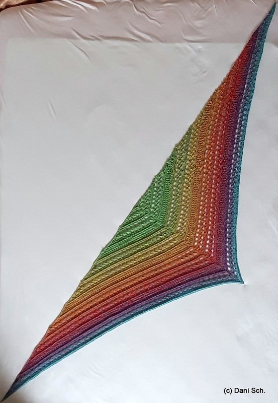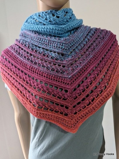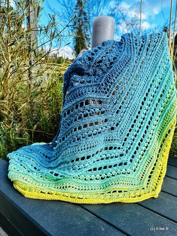 Das Tuch besteht aus zwei effektvollen Mustersätzen und eignet sich besonders gut für Farbverlaufsgarn,