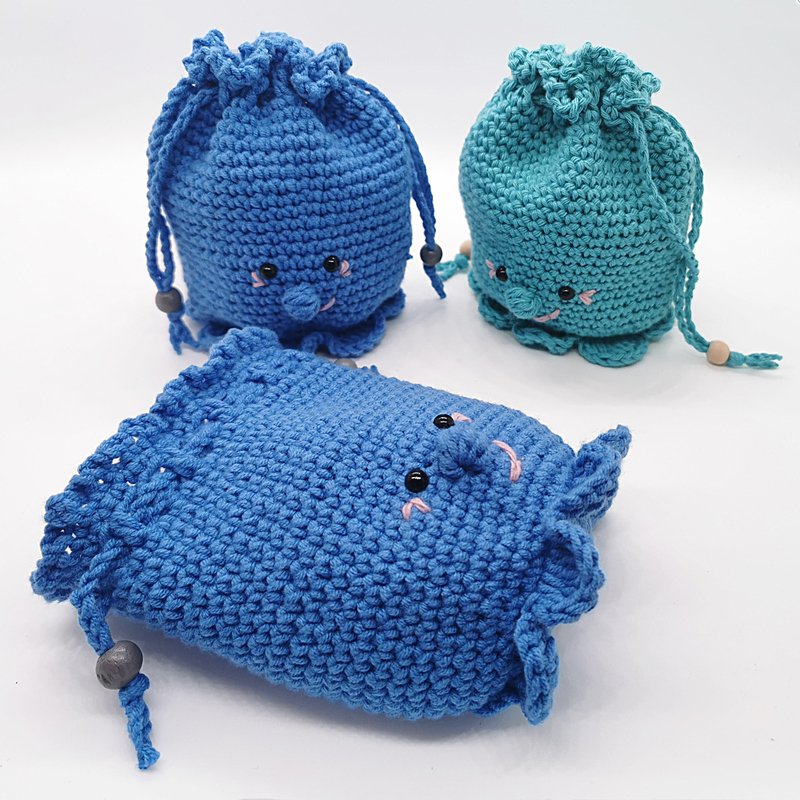 Der Octopouch ist ein süßer, in einem Stück gehäkelter Beutel in Form eines bezaubernden Oktopus. Perfekt für das spontane Geschenk, das garantiert ein Lächeln auf das Gesicht des Empfängers zaubert. Egal, ob du kleine Überraschungen, Schmuck oder Leckereien hineinpackst, dieser Beutel wird deinen Lieben eine Riesenfreude bereiten.