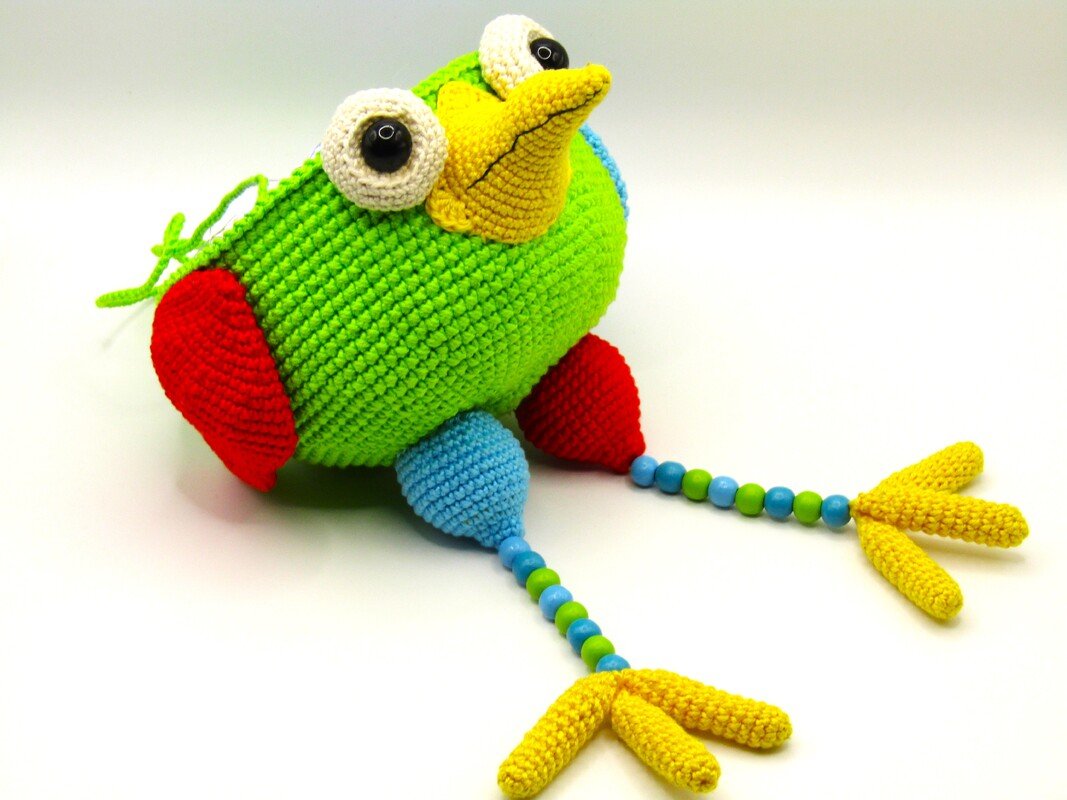 Der Körper wird doppelwandig gehäkelt. Außen mit doppeltem Faden und Innen mit einfachem Faden, dadurch wird der Körper stabiler.
