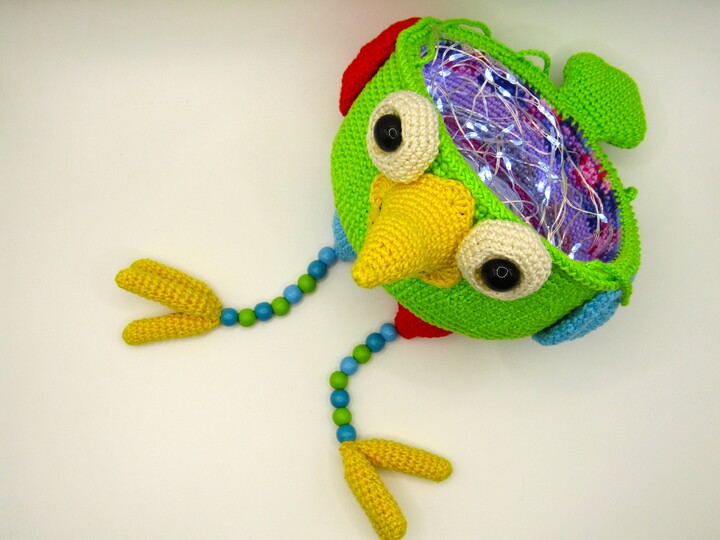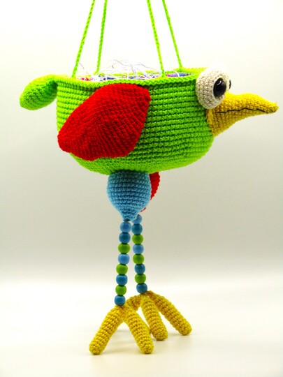 Der lustige Vogel kann natürlich auch als Utensilo eingesetzt werden, überall dort wo es dir gefällt.