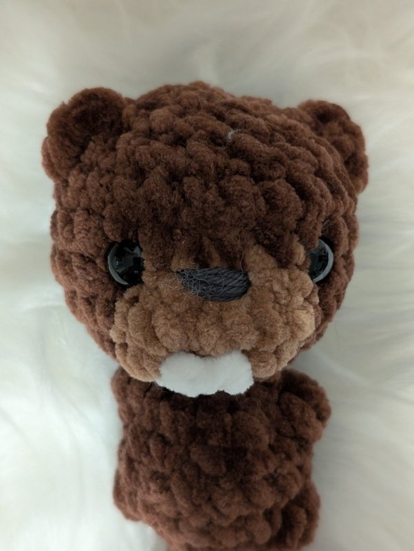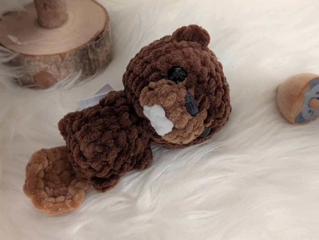 Mit deiner Häkelnadel in Stärke 4,0 und der in der Anleitung angegebenen Wolle - Chenille 100 g /120 m - wird der Biber ca. 10 cm groß.
