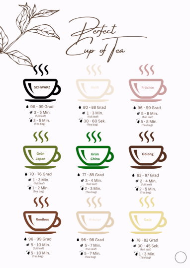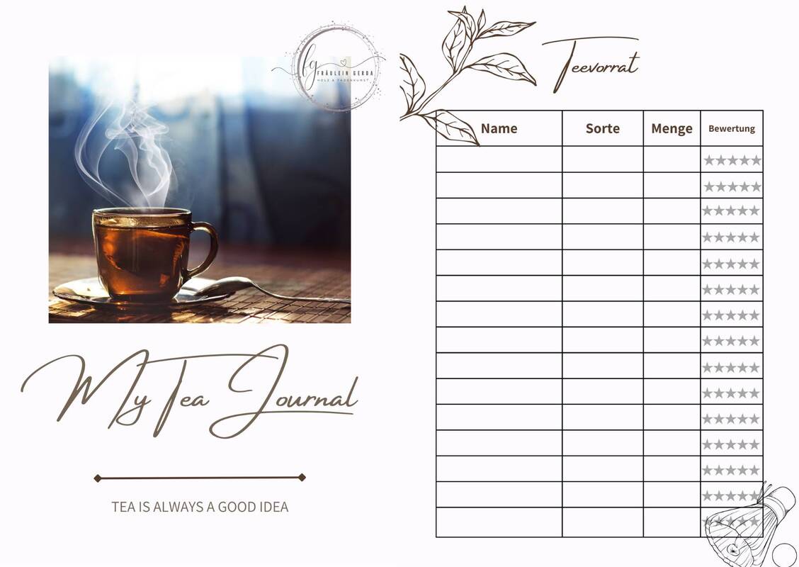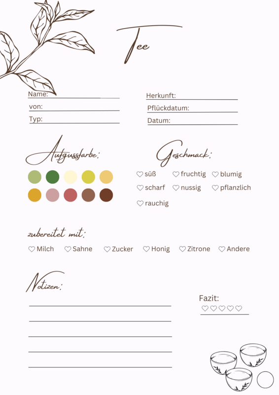 Tauche ein in die reiche Vielfalt von 17 liebevoll gestalteten Seiten, die dein Teevergnügen auf eine neue Ebene heben werden. Unser Tee Journal ist die perfekte Begleitung für alle Teeliebhaber.