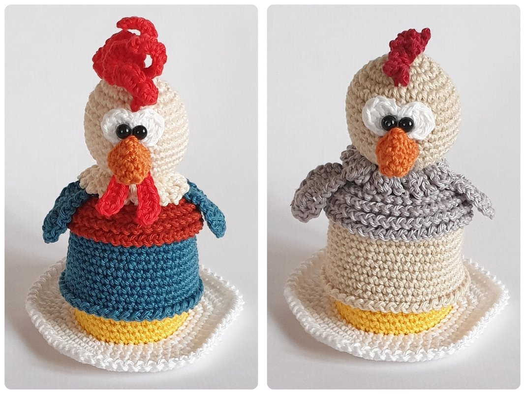 Durch viele Bilder in der Anleitung, können sich auch geübte Anfänger diese süßen Hühner häkeln