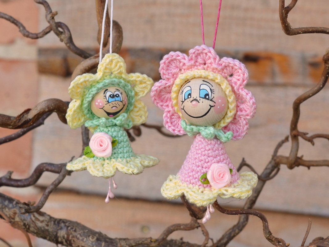 Häkelanleitung Anhänger Blumenkinder für Holzkugeln in 2 Größen