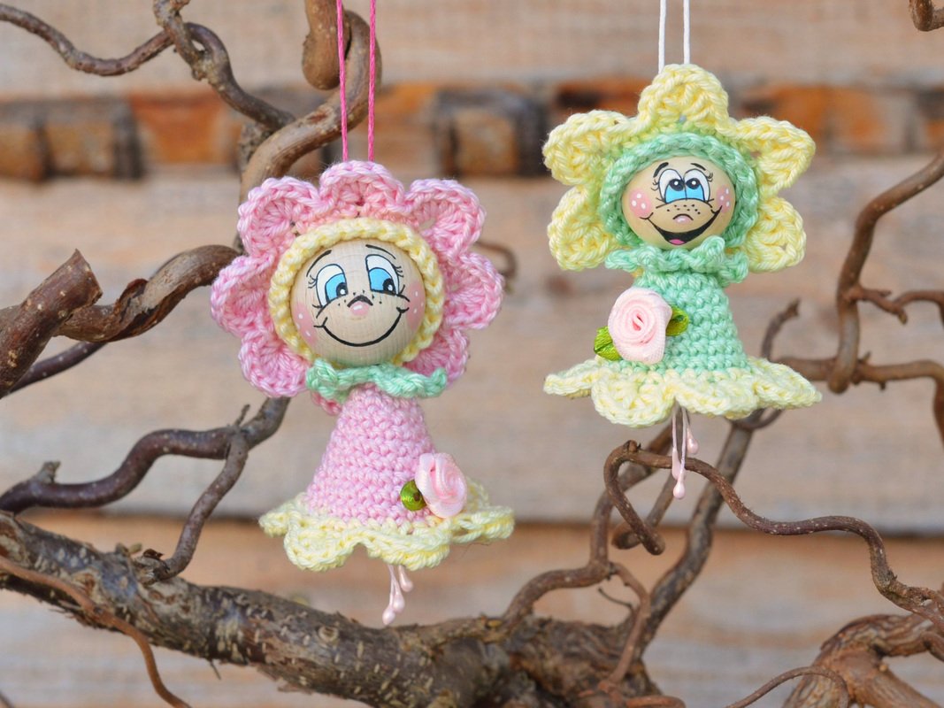 Mit dieser Anleitung zeige ich dir, wie du diese fröhlichen Blumenkind-Anhänger in 2 Größen häkeln kannst.