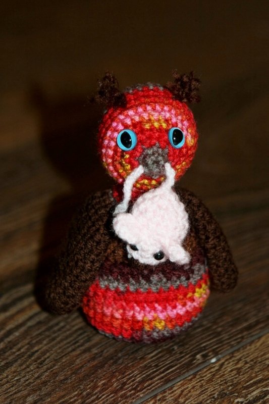 Diese Häkelanleitung beeinhaltet Olli mit dem Mäusehunger