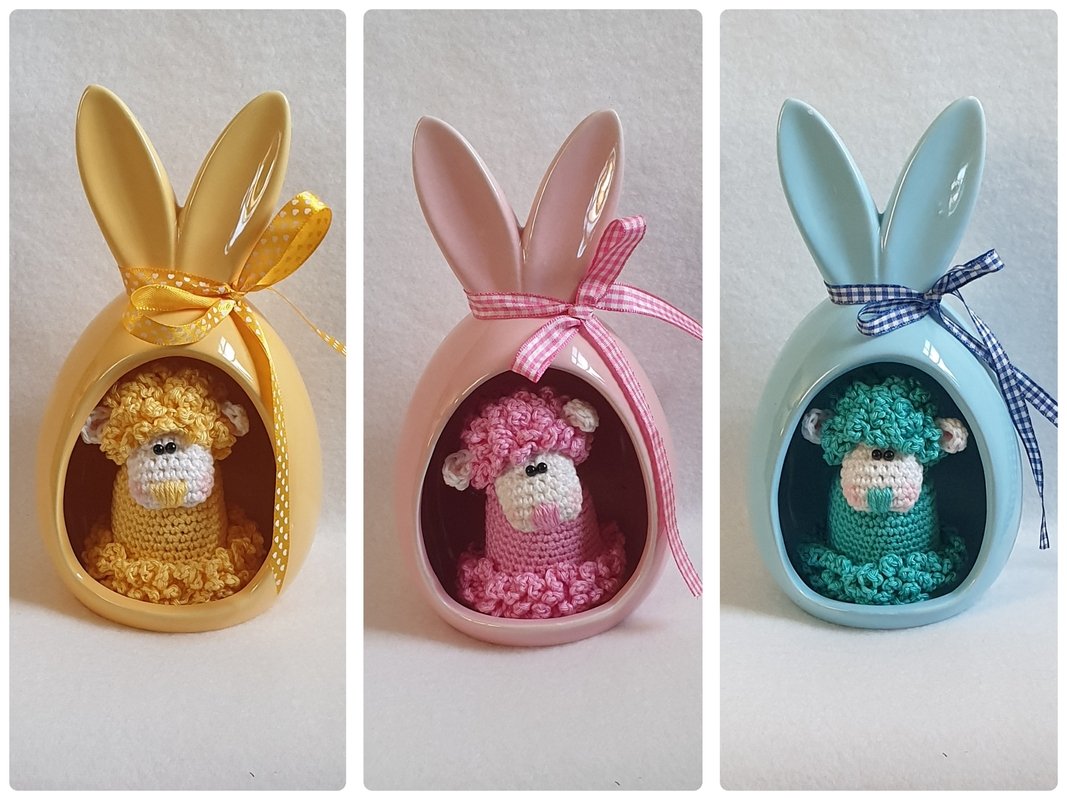 Diese süßen , superschnell gehäkelten Schafe eignen sich hervorragend um deinen Osterstrauch zu schmücken.