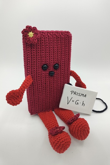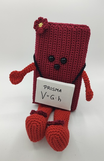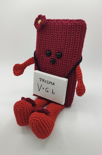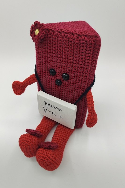 Häkelanleitung eines Prismas, die Ihre eigene Formel um den Hals trägt, mit der man das Volumen ausrechnen kann.