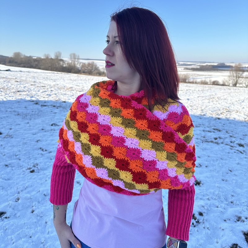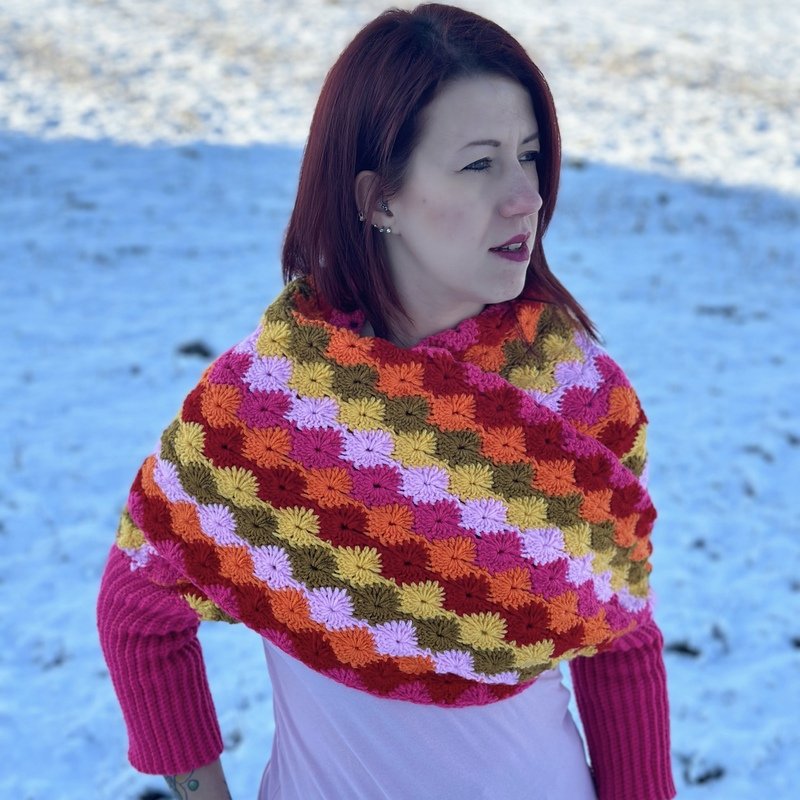 Wrap yourself in gorgeous and bright colors with this unique addition to your handmade wardrobe.