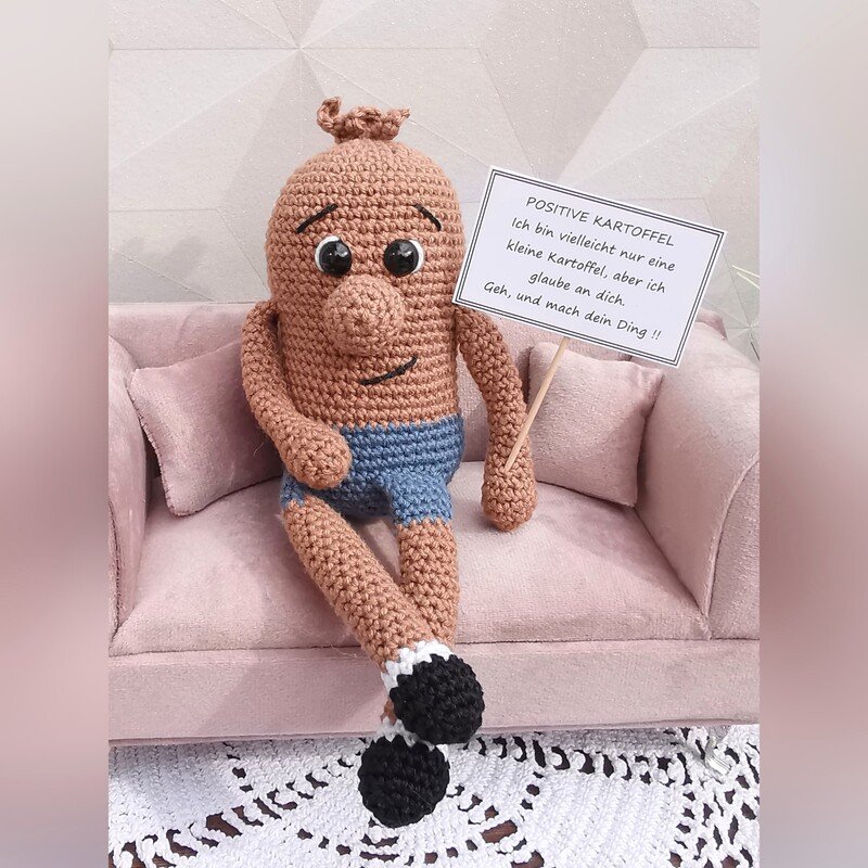 Die Anleitung umfasst 15 Seiten und ist recht einfach, sodass auch Anfänger schon ihre Freude haben dürften. Ein paar lustige Kartoffel-Sprüche zum Ausschneiden sind auch enthalten.