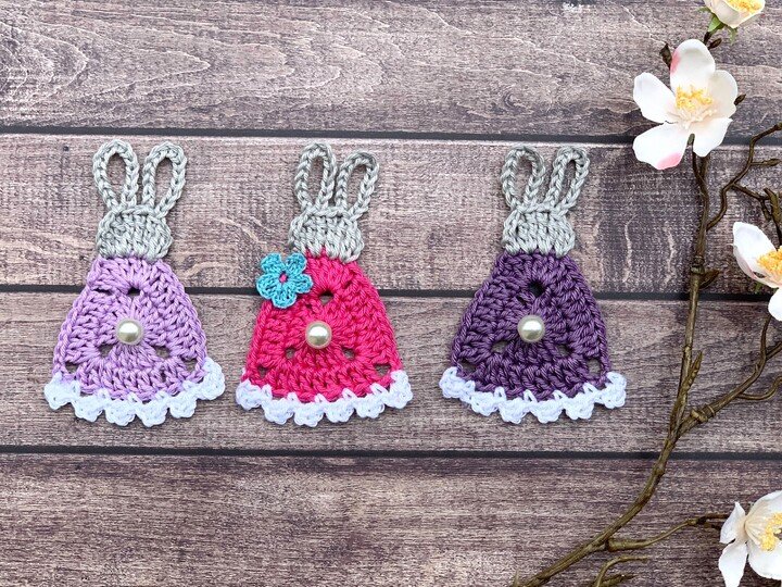 Sie sind vielseitig einsetzbar und können verwendet werden, um Ostersträucher, Fenster oder selbstgemachte Karten zu dekorieren. Das Beste daran ist, dass sie schnell gehäkelt werden und nur ein paar Wollreste erfordern.