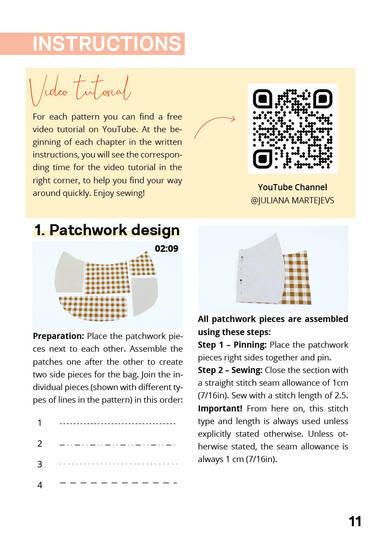 Patchwork Taschen Schnittmuster mit Reißverschluss und Schulterhenkel mit kostenloser Taschen Video Nähanleitung auf unserem YouTube-Kanal JULIANA MARTEJEVS - Das DIY-Modelabel oder julianamartejevs. com