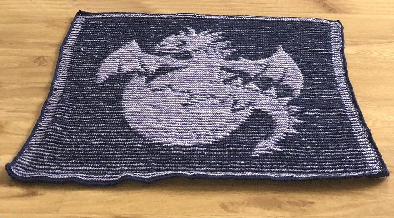 Diese Decke ist in der Technik "Illusionsstricken" gearbeitet.
