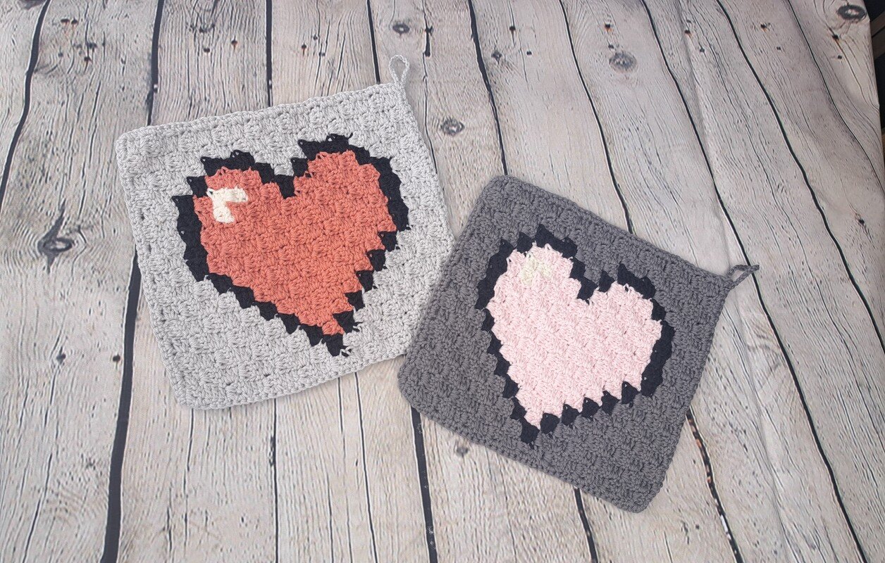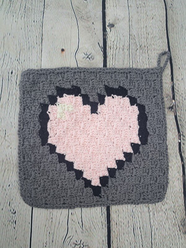 Dies ist eine Häkelanleitung für ein Topflappen mit Herz, Der Topflappen ist sehr schnell gearbeitet und ein super Geschenk, Mitbringsel oder Deko in der Küche. Der Topflappen ist mit der C2C Häkeltechnik gearbeitet. Die Anleitung beinhaltet eine Reihen Häkel Erklärung und eine Grafik die nachgehäkelt werden kann. Kenntnisse da müssen aber vorhanden sein.