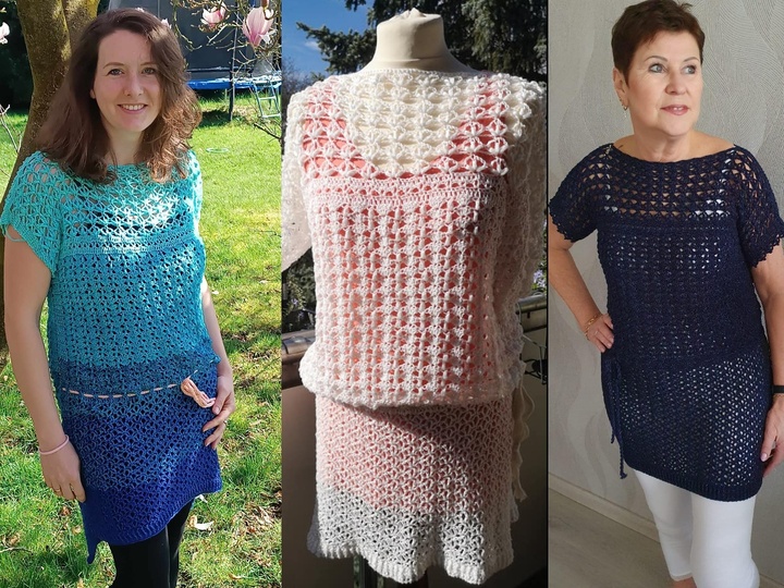 Die Tunika kann in allen Größen gehäkelt werden, die Maschenzahl muss teilbar durch 12 sein.