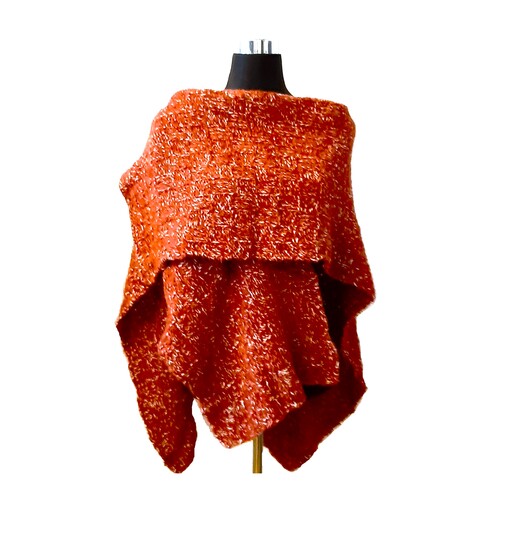 Der Poncho hat eine Einheitsgröße und ein fertiges Maß von Ca. 75 cm breit, Rückenlänge 70 cm