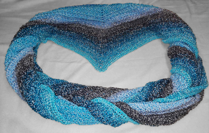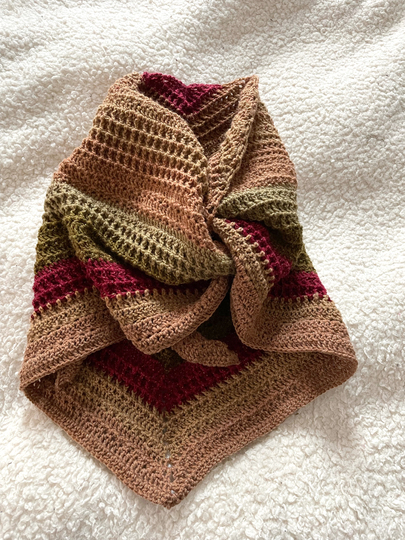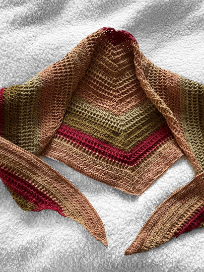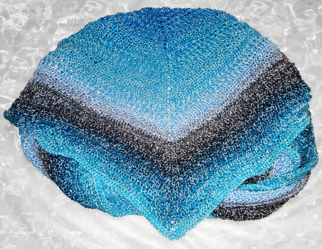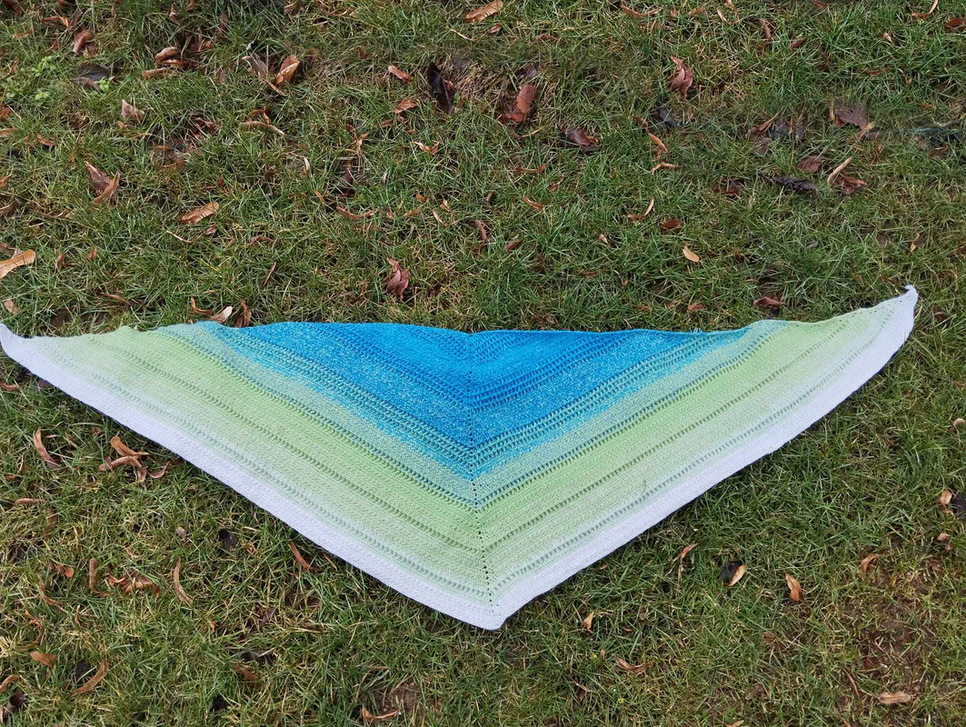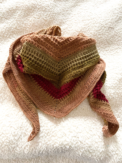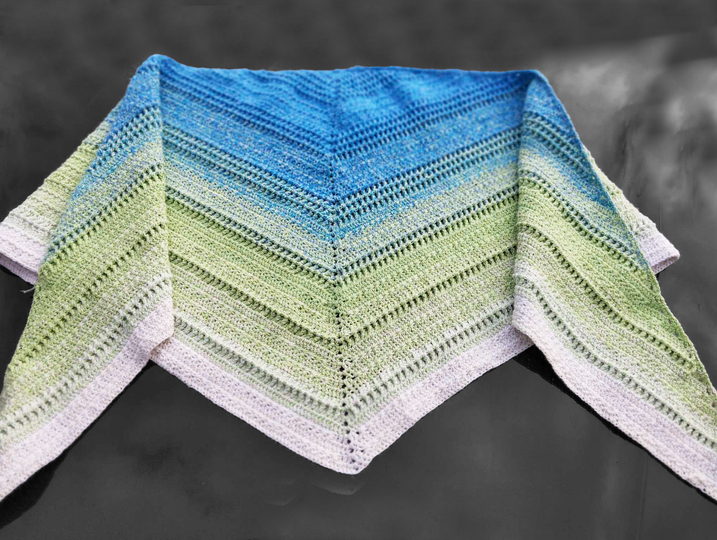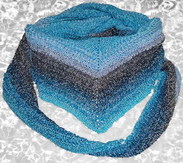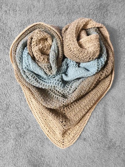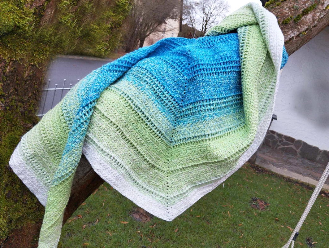 Das flache Dreieckstuch "Yve" kann nach Belieben in verschiedenen Größen gehäkelt werden.