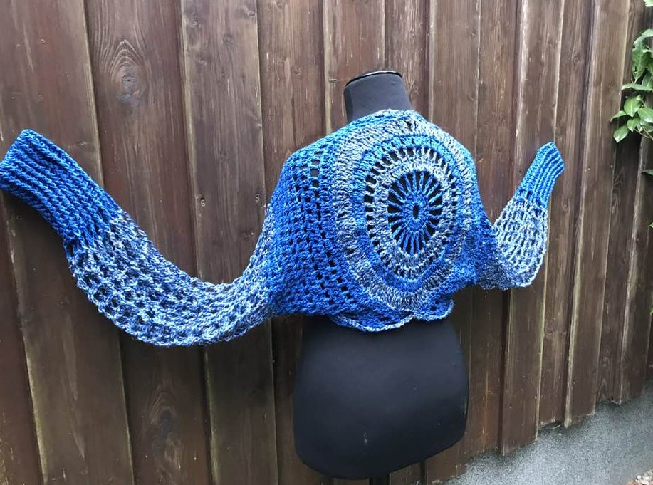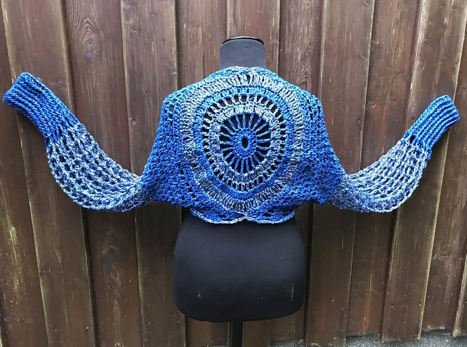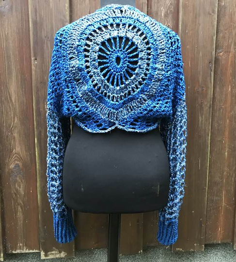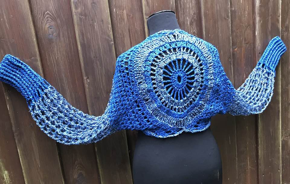 der fertige Ärmel Bolero MANDALA wiegt fertig 430 gr
