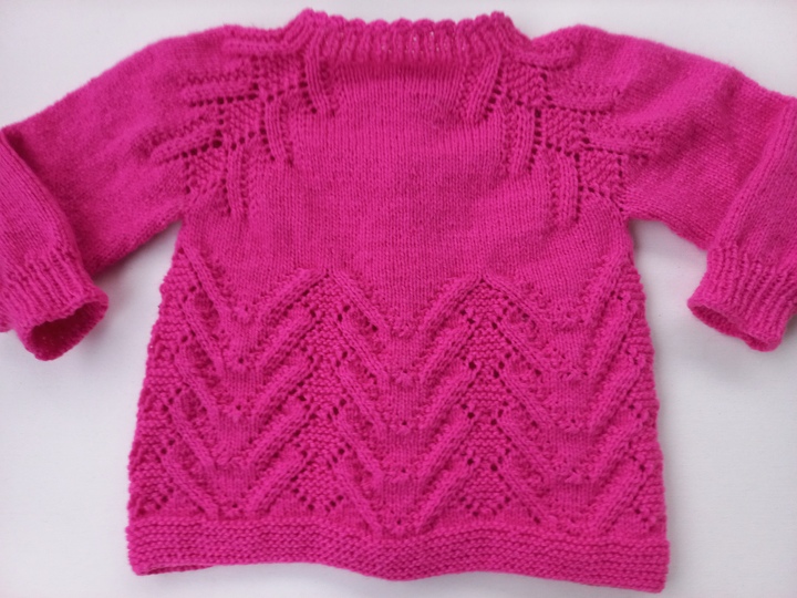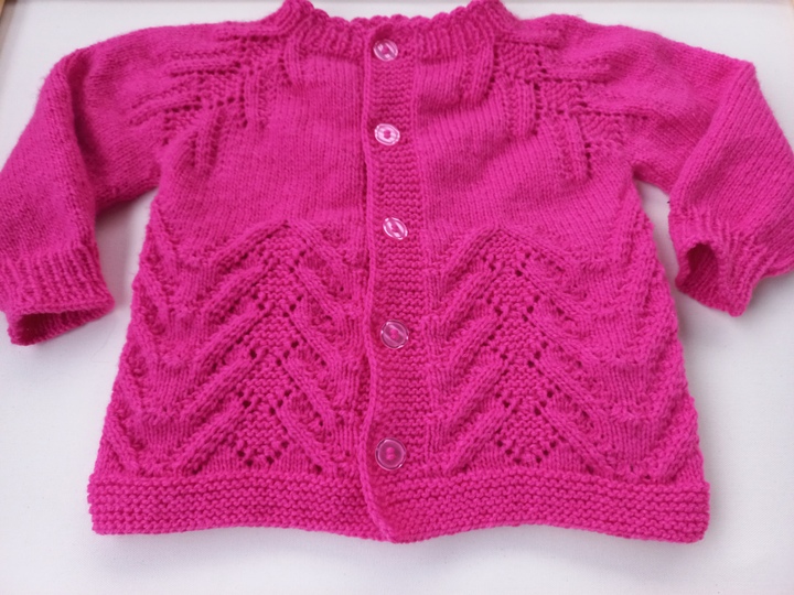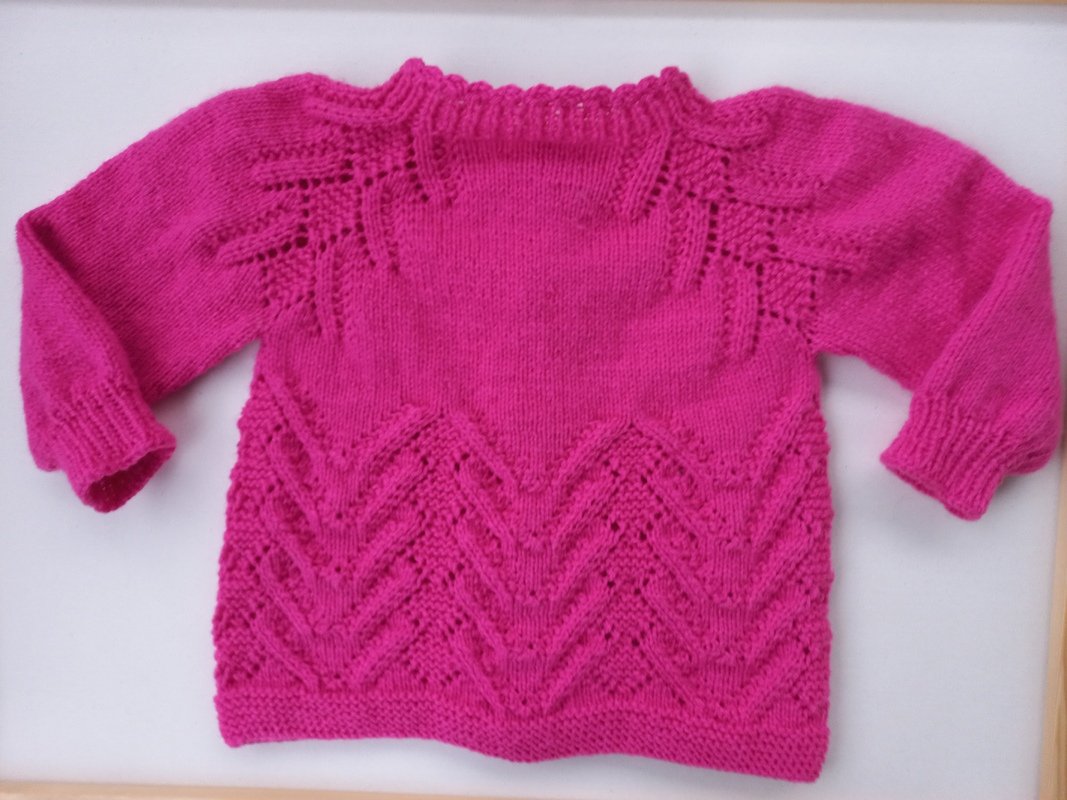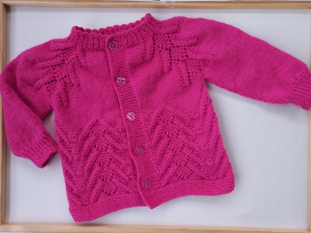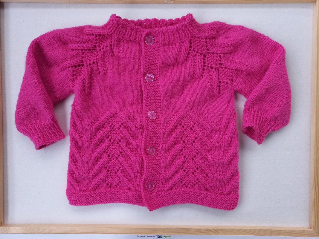 Hier bekommst du eine bis ins kleinste Detail erklärte 16-seitige Strickanleitung in deutsch für eine wunderschöne Kinderjacke/Mädchenjacke mit Raglanzunahmen in einem tollem Lochmuster.