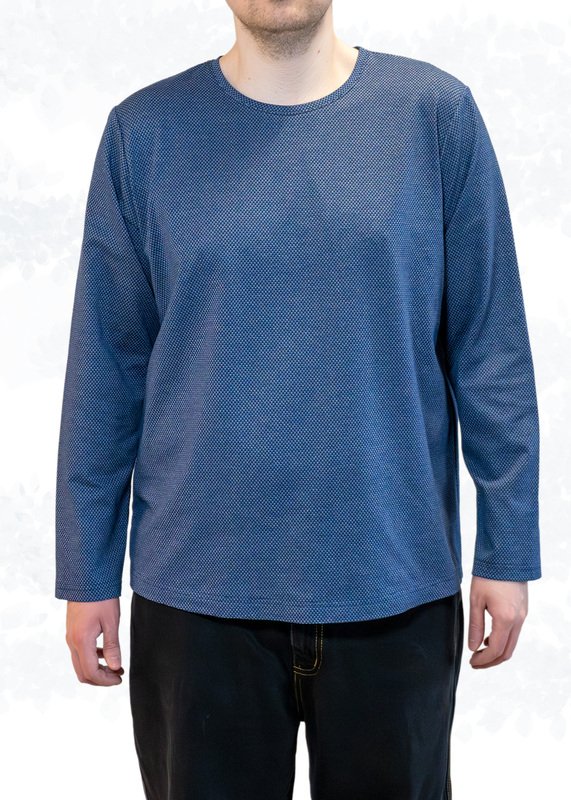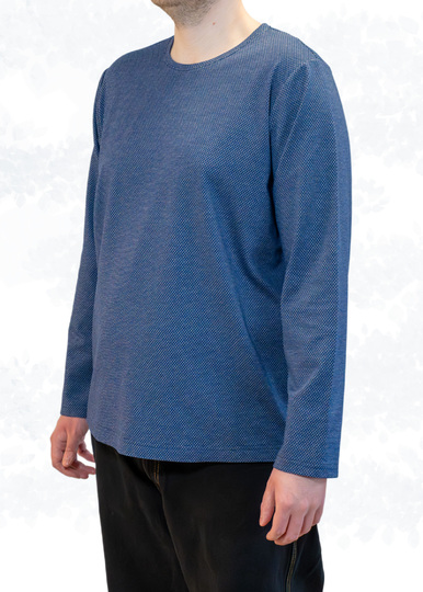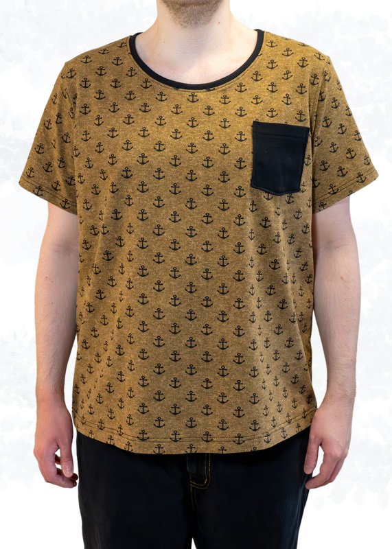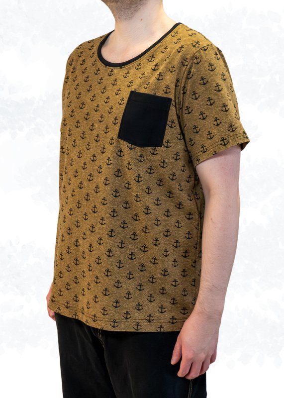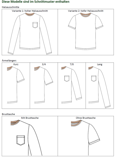 „Sam“ wird aus Jersey oder Feinstrick genäht. Optional kannst du eine Brusttasche auf das Vorderteil aufsteppen. Das Schnittmuster enthält zudem eine Modifikation am Vorderteil für Männer mit Bauch.
