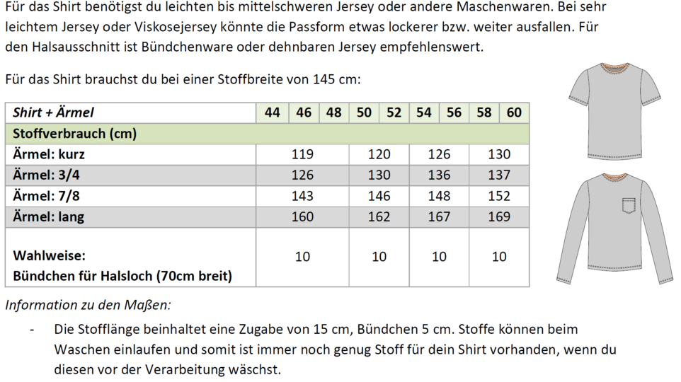 Das Modell „Sam“ ist ein Basic-Shirt für Herren, das bequem geschnitten ist. Das Shirt hat eine hüftumspielende Länge und bietet vier verschiedene Ärmellängen, sodass du mit diesem Schnittmuster verschiedene Shirts für alle Jahreszeiten nähen kannst.