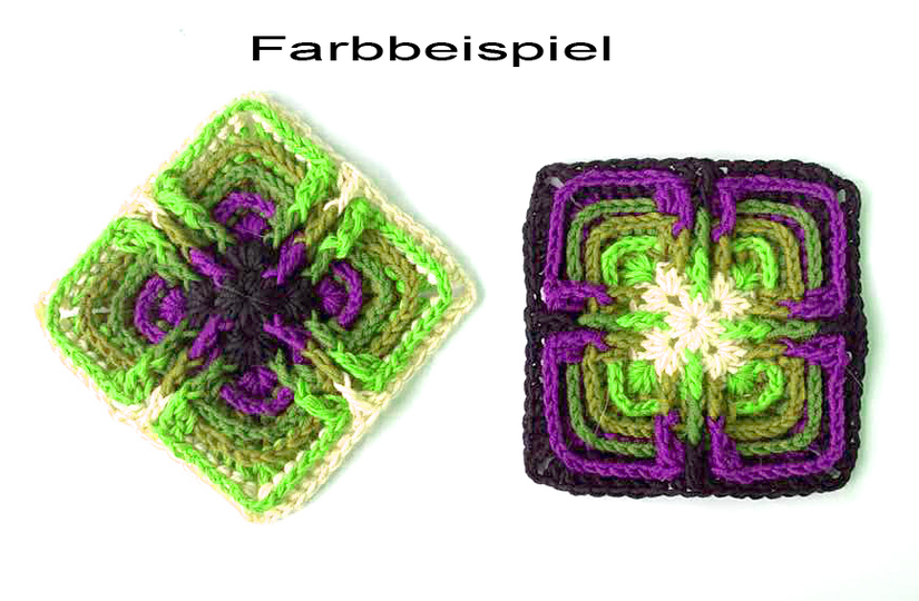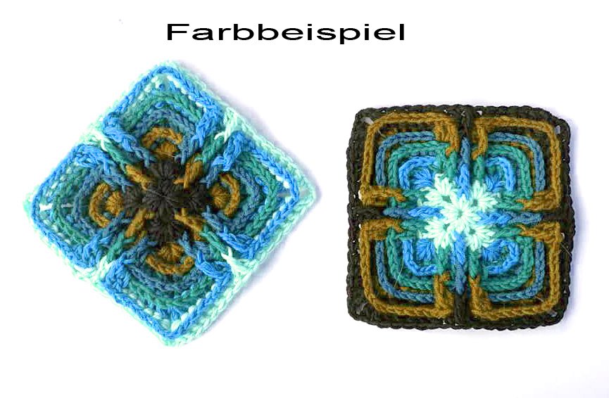 Man kann natürlich jede andere Wolle mit einer ähnlichen Lauflänge benutzen… Auch viele Farbkombinationen sind beim 70.ziger Granny. möglich! Ich wünsche viel Vergnügen beim Kreativ sein!