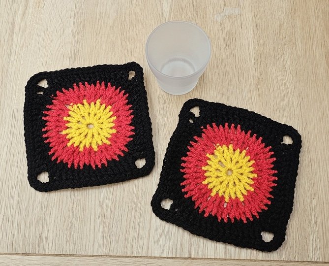 Maße Untersetzer. hier ca. 15 x 15 cm