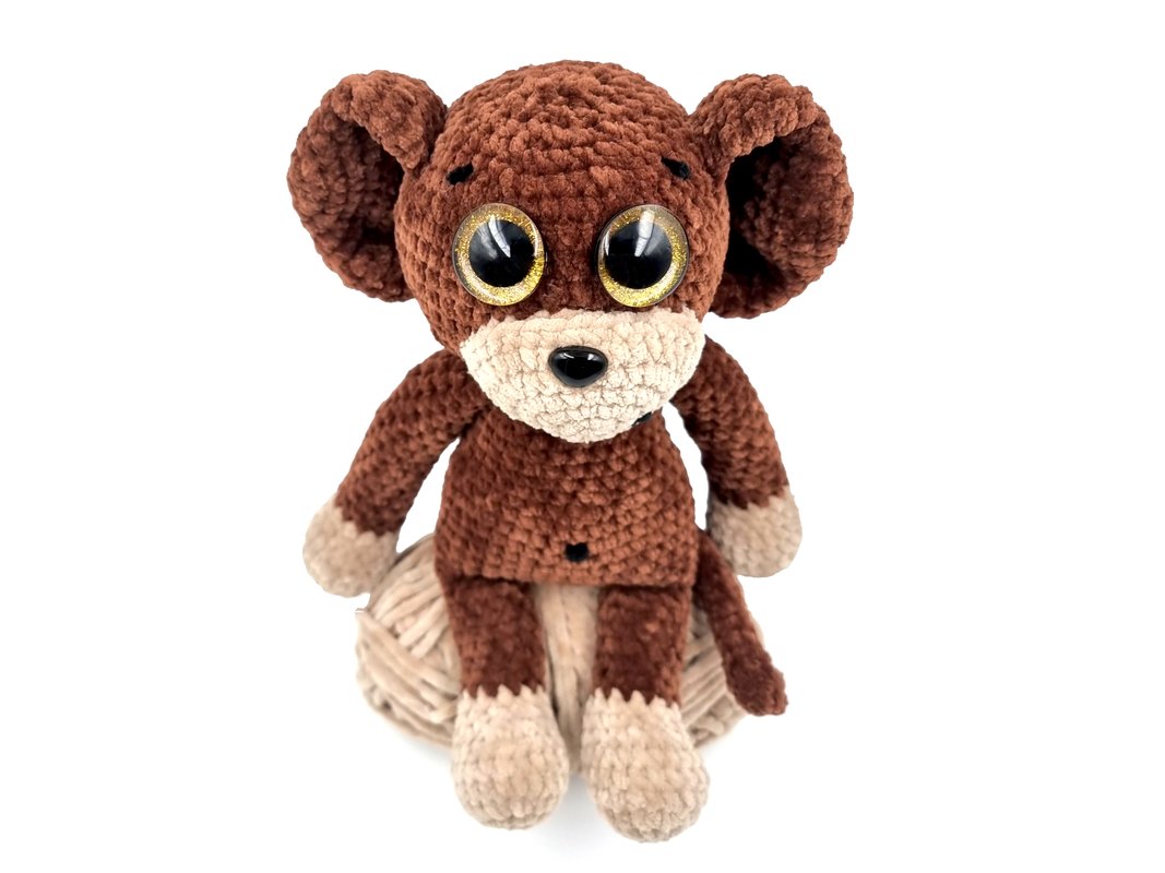 Baby-Äffchen „Luke“ wird unter Verwendung obiger Wolle (eng gehäkelt) ca. 33 cm groß