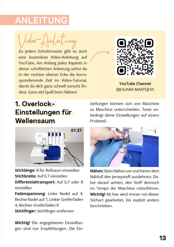 Die Video-Anleitung zum Schnittmuster findest du auf julianamartejevs. com unter Nähanleitungen. Falls du noch nie genäht hast, schau dir als erstes unser Nähmaschinen-Grundlagen Video-Tutorial an. Dort lernst du die Bestandteile einer Nähmaschine kennen und lernst deine erste Naht zu fertigen.