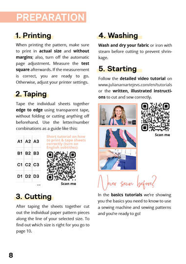 Die Größen XS-XXXL sind als Schnittmuster enthalten. Die genauen Maße der Größen könnt ihr der Größentabelle in den Bildern entnehmen. Als Referenz: Unser Model Naomi ist 170cm groß und trägt Größe S. Unser Model Freia ist 173cm groß und trägt Größe XXL.