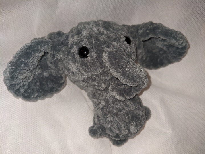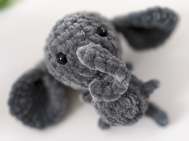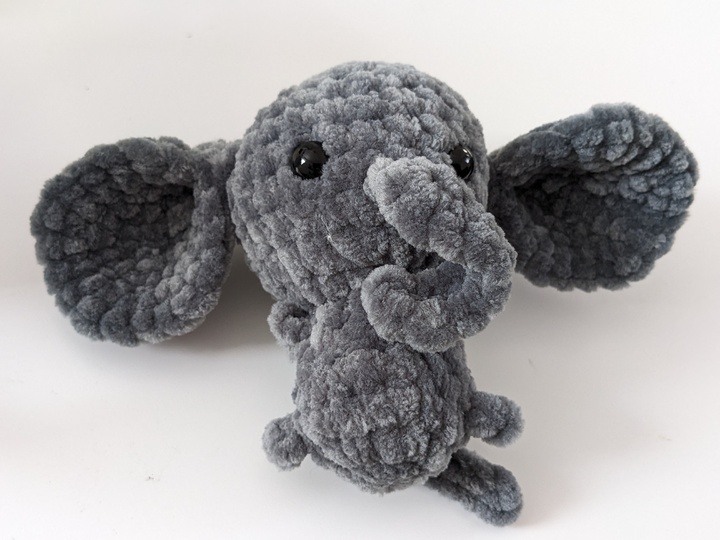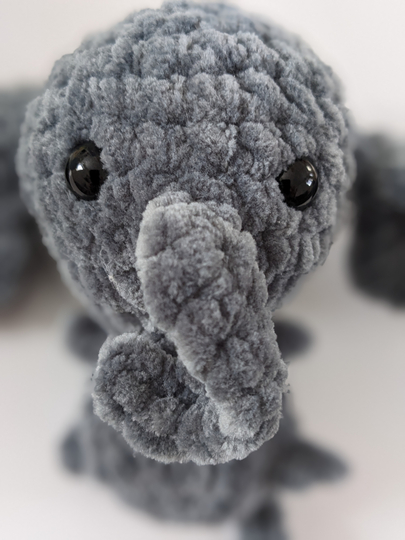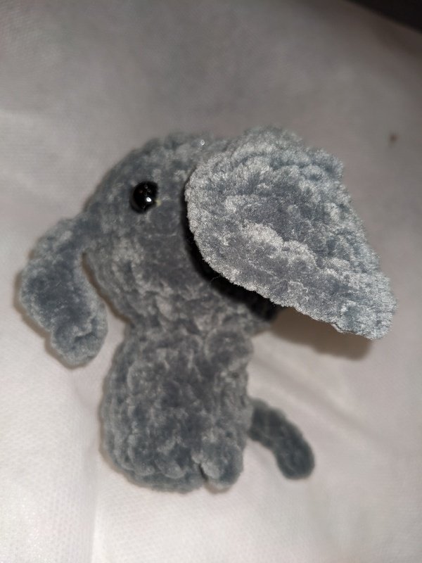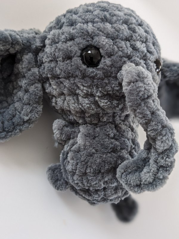 Mit deiner Häkelnadel in Stärke 4,0 und der in der Anleitung angegebenen Wolle - Chenille 100 g /120 m - wird der Elefant ca. 10 cm groß.