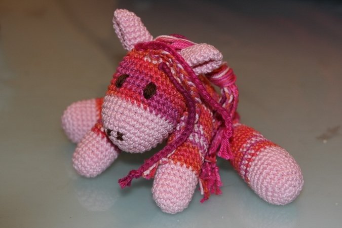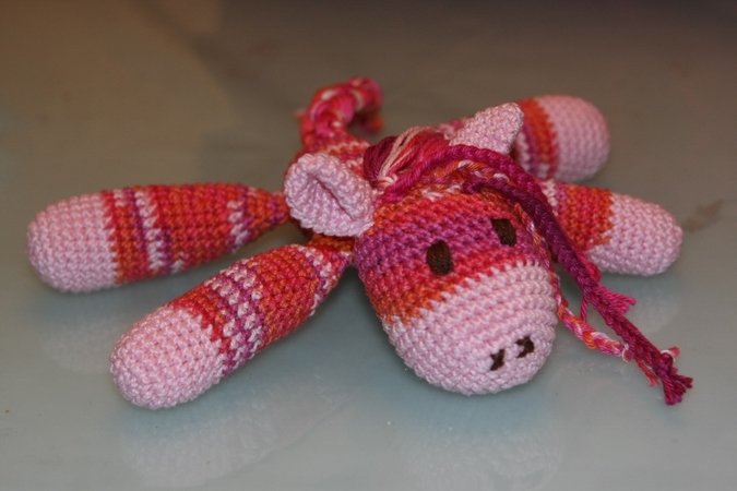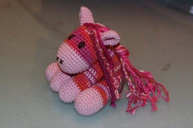 Diese Häkelanleitung beeinhaltet das kleine Knutschpony Sophia