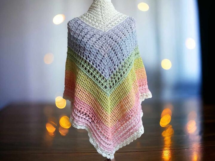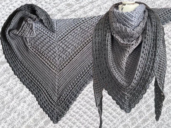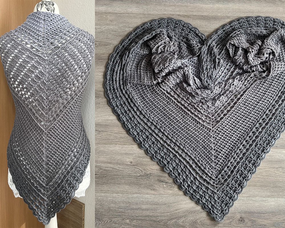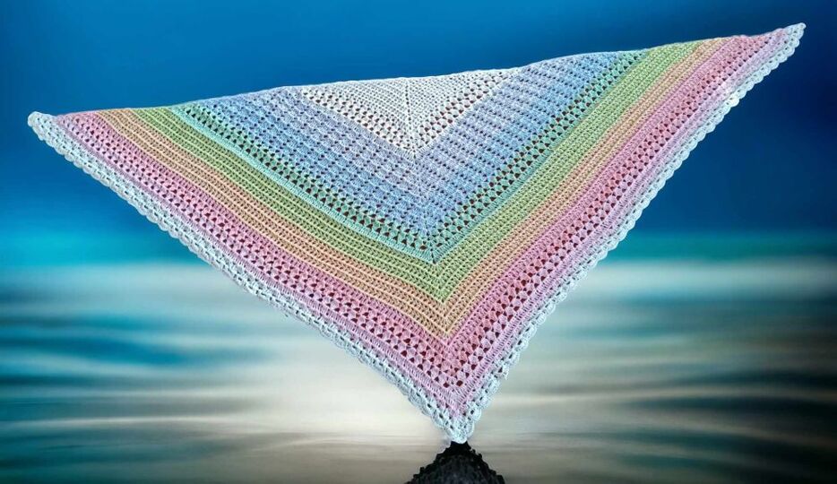 Das Tuch wird von oben in der Mitte begonnen und nach unten in Richtung Spitze gehäkelt.