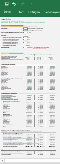 *Wichtig: Der Raglan-Rechner wurde ausschließlich für die Nutzung mit EXCEL am PC entwickelt und optimiert. Mit den kostenlosen Programmen LibreOffice und OpenOffice sowie EXCEL am MAC kann der Raglan-Rechner zwar genutzt werden, jedoch können einige Funktionen optisch und funktionell eingeschränkt sein.