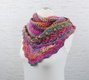 Der Drachenschwanz wird von der Seite her begonnen. Daher wird er assymetrisch. Er kann mit fasst jedem Garn (Nadelstärke 2,5 - 4,5) gehäkelt werden. Entweder mit einem schöne Farbverlaufsgarn in einem Baumwollmischgarn für Herbst oder mit Sockenwolle für kalte Wintertage. Das Muster kommt bei Verwendung von bunter Wolle am Besten zur Geltung.