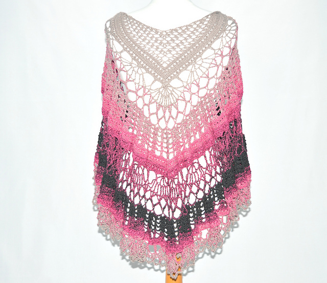 Dieses gehäkelte Dreieckstuch ist nicht nur besonders durch das schöne Verlaufsgarn, sondern auch wegen der verschiedenen Maschenmuster, die hier kombiniert wurden.