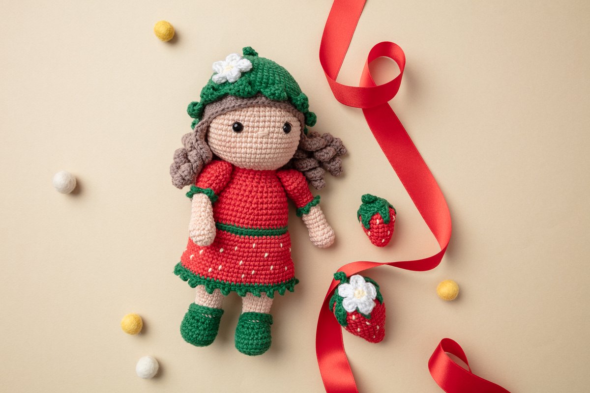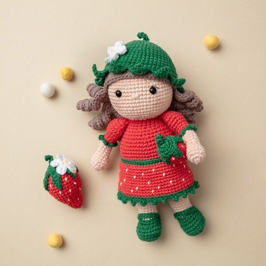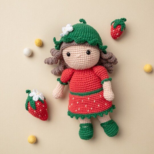 Die ist eine digitale, deutschsprachige Häkelanleitung für das Erdbeermädchen Emma. Die Anleitung enthält viele Detailfotos und eine ausführliche Beschreibung der einzelnen Arbeitsschritte. Die Figur kann daher auch von Anfänger/innen gut nachgearbeitet werden. Häkelgrundkenntnisse sollten jedoch vorhanden sein.