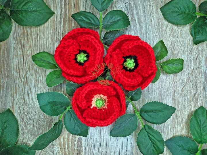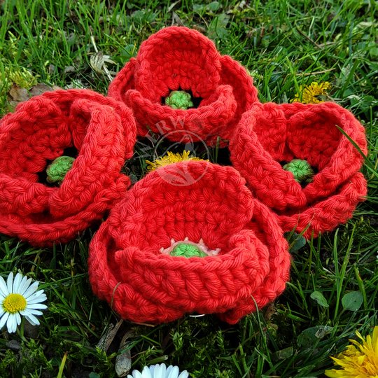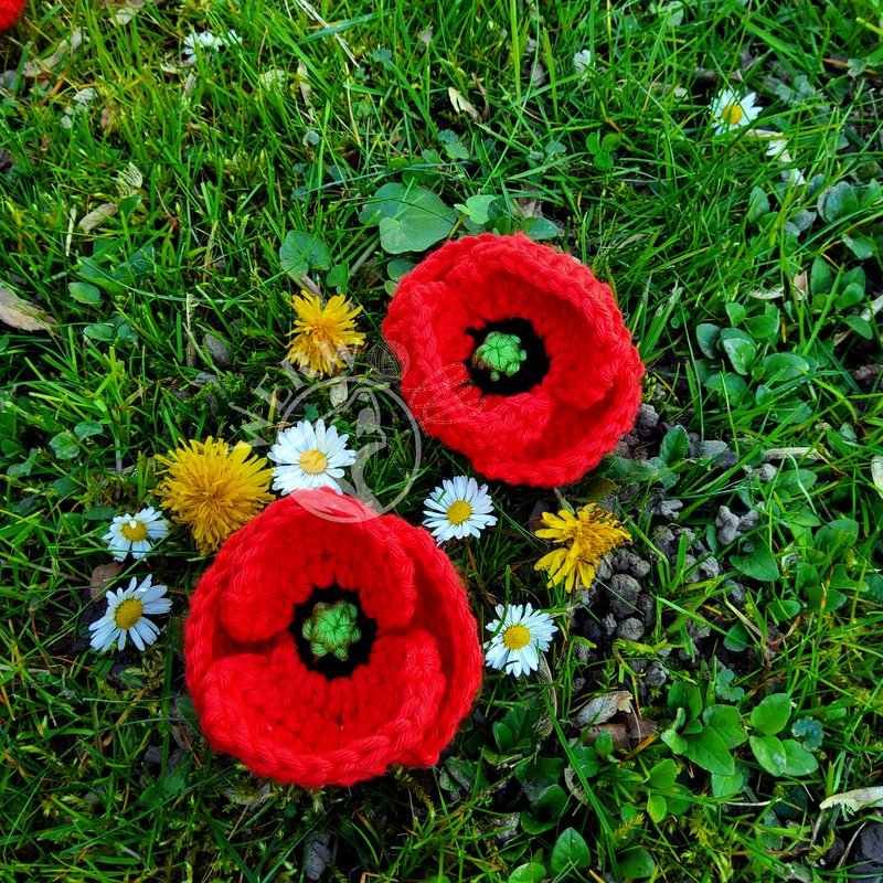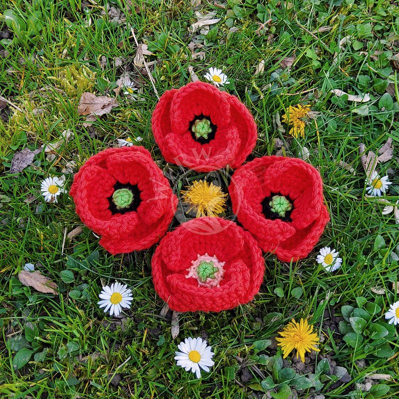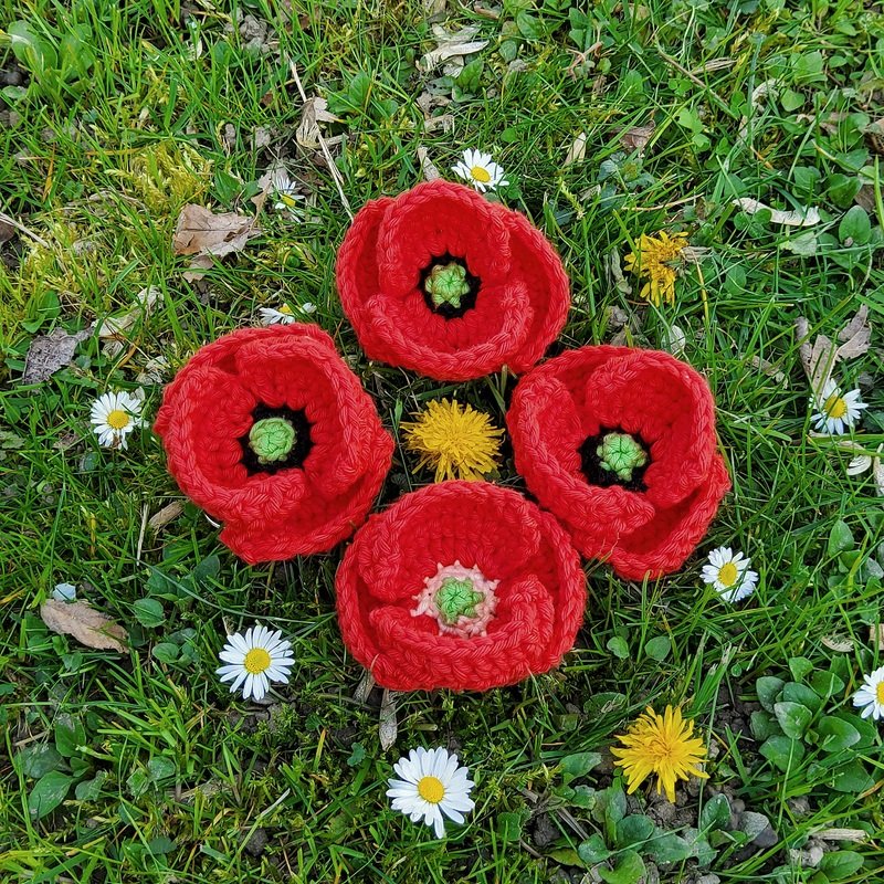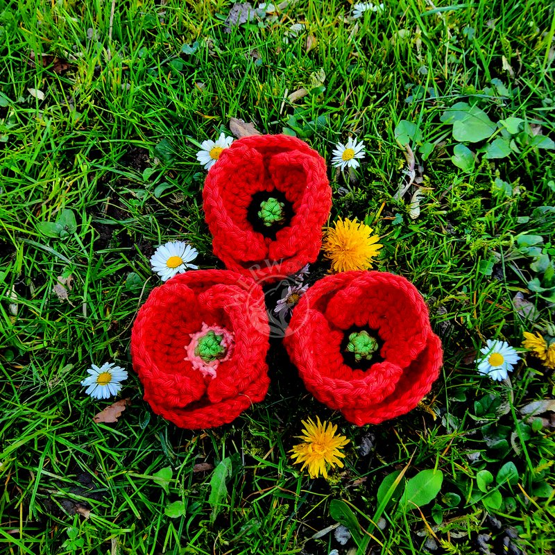 Mit dieser Häkelanleitung kannst du deine eigene Mohnblume kreieren und das ganz ohne nähen. Du kannst jede Farbe und jedes Garn verwenden, dass dir gefällt.