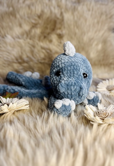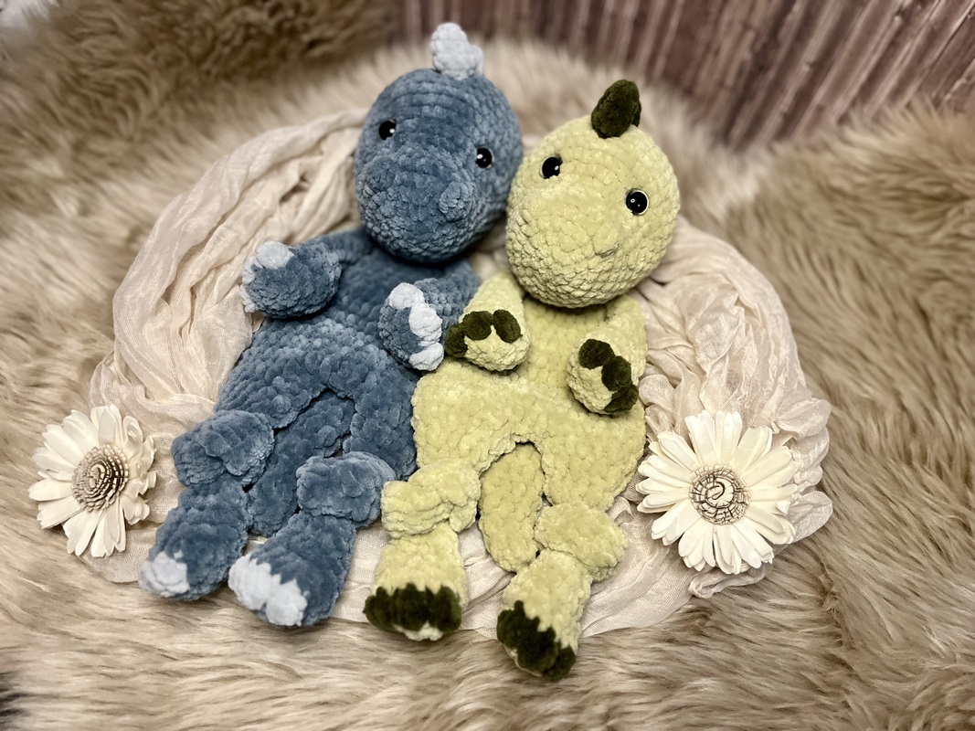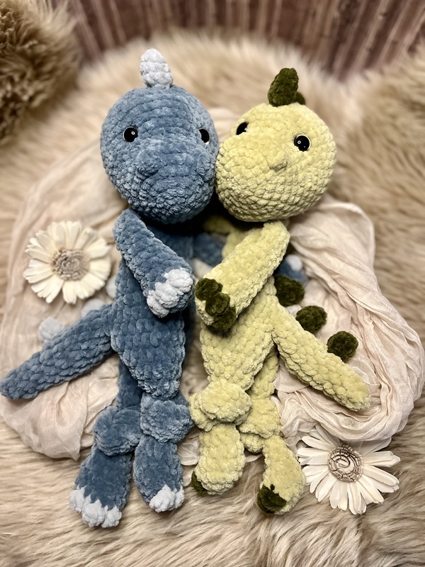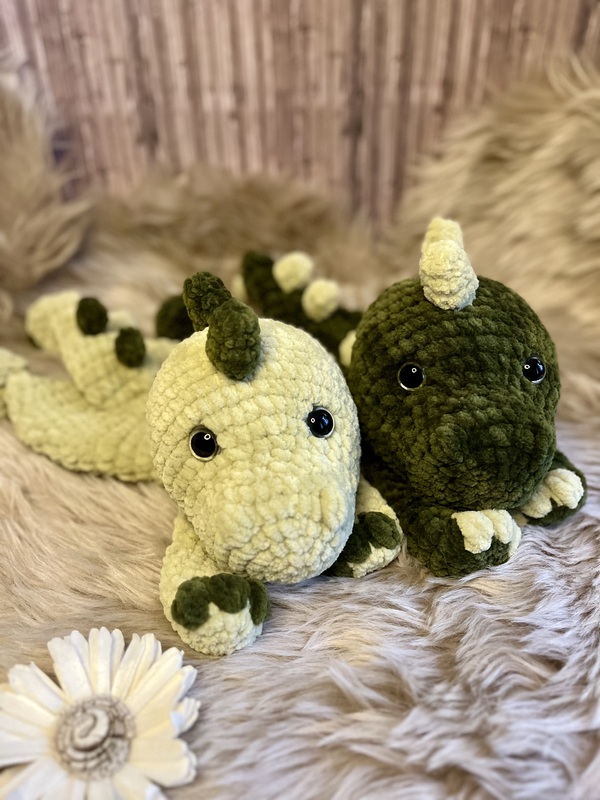 Der Dino wird etwa 30cm groß. (Je nachdem welches Garn du verwendest kann die Größe variieren.)
