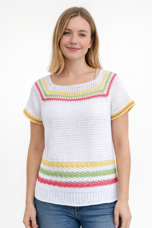 Mit dieser Anleitung kannst du dir einen hübschen Frühlingspulli häkeln.