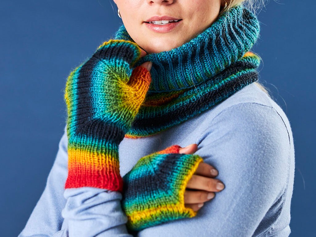 Stricke einen Loop und Handschuhe, die perfekt miteinander harmonieren.