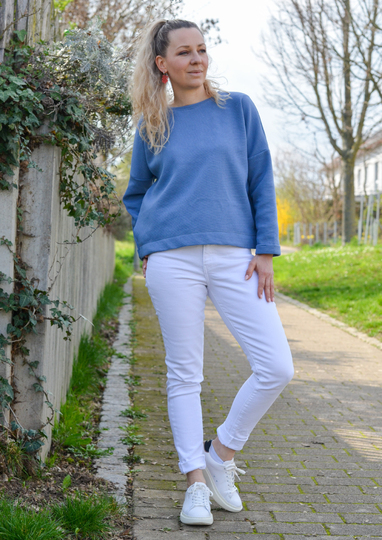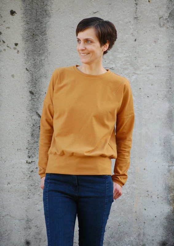Außerdem kann wahlweise ein regulärer oder Schlitz-Saum genäht werden. Der Saum-Gummi-Zug macht den Pulli zum richtigen Hingucker! Durch den legeren Sitz wird Ruth super bequem und passt perfekt zur Jeans.