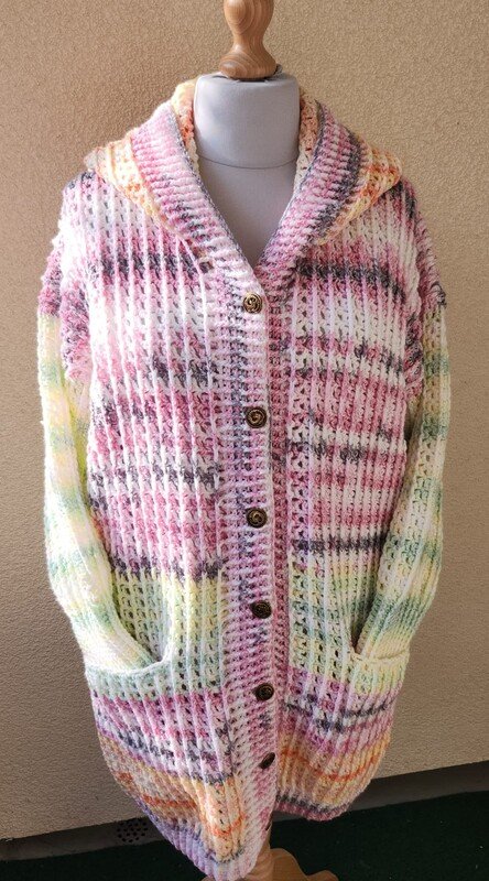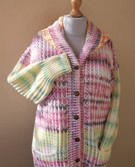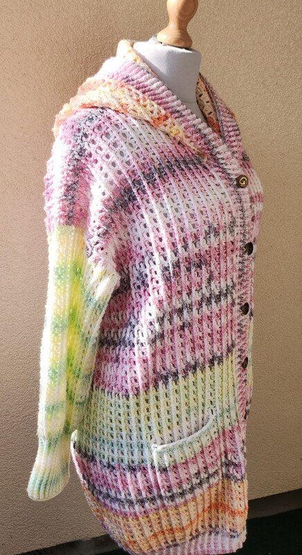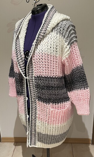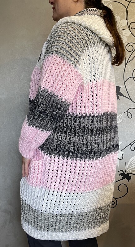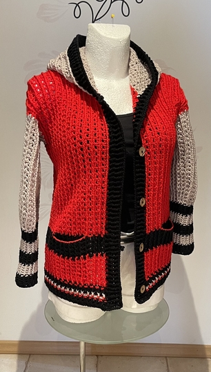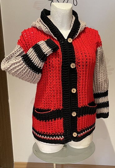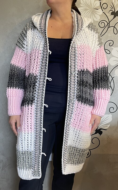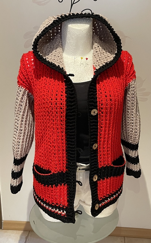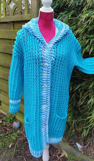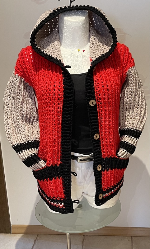 Ich gebe dir hierzu verschiedene Möglichkeiten. Die Jacke wird in einem Stück von oben nach unten gehäkelt.