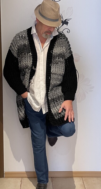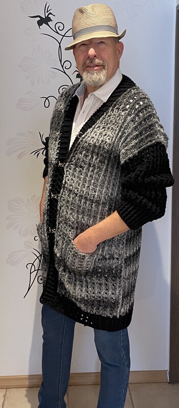 Es kann mit langem oder kurzem Arm gehäkelt werden.