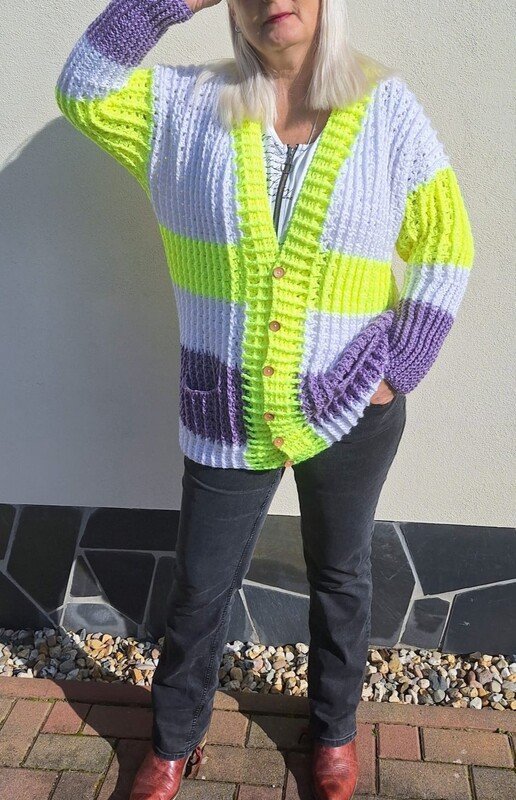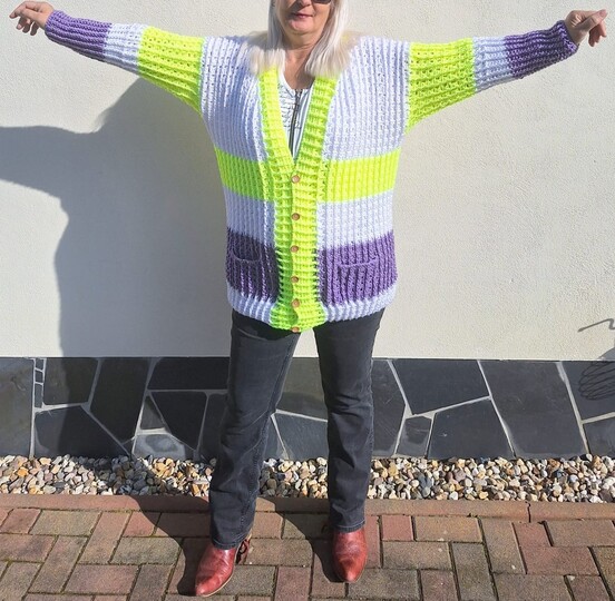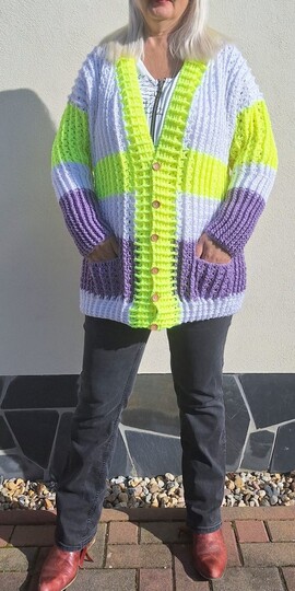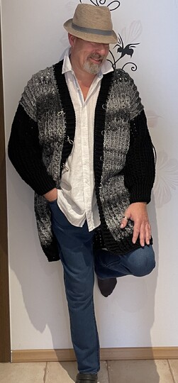 Eine lässig geschnittene Jacke für das ganze Jahr. Die verschiedenen Garne geben der Jacke einen besonderen Look.